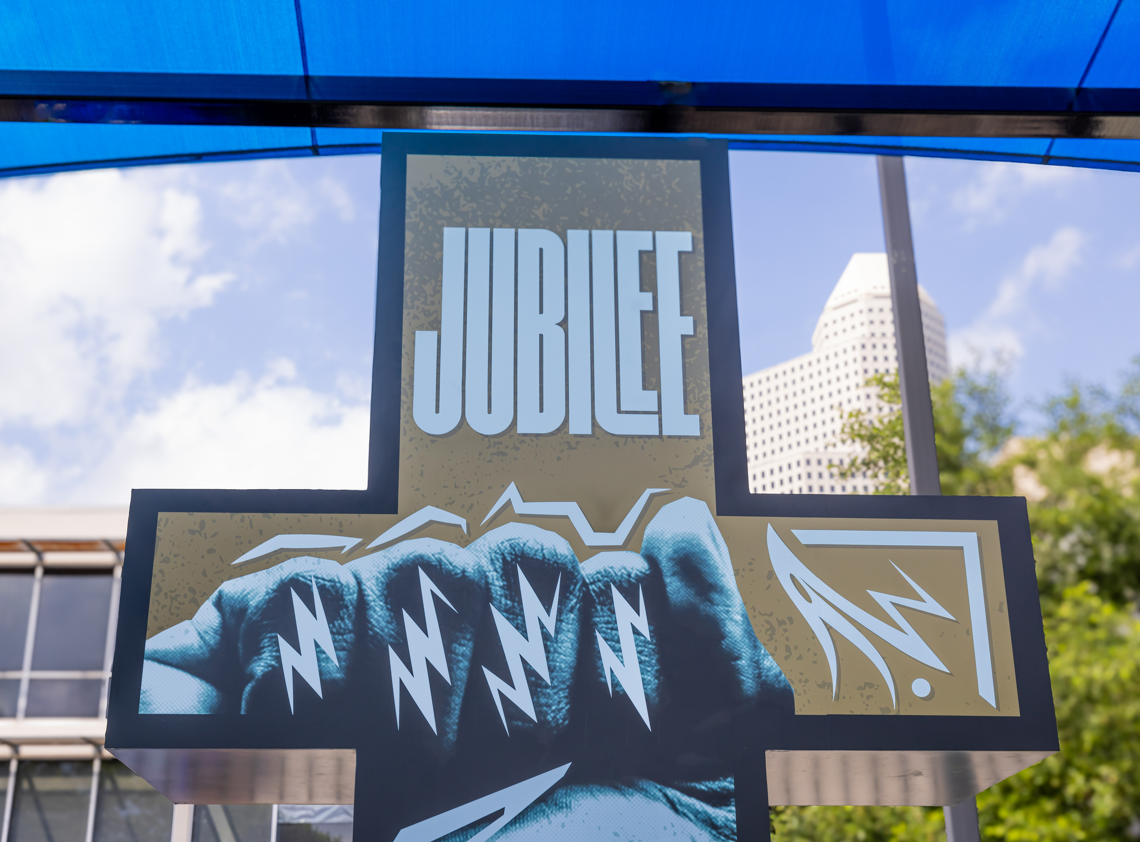T: Symbolizes progress and the breaking of mental chains, depicted with a clenched fist to acknowledge Juneteenth Jubilee.