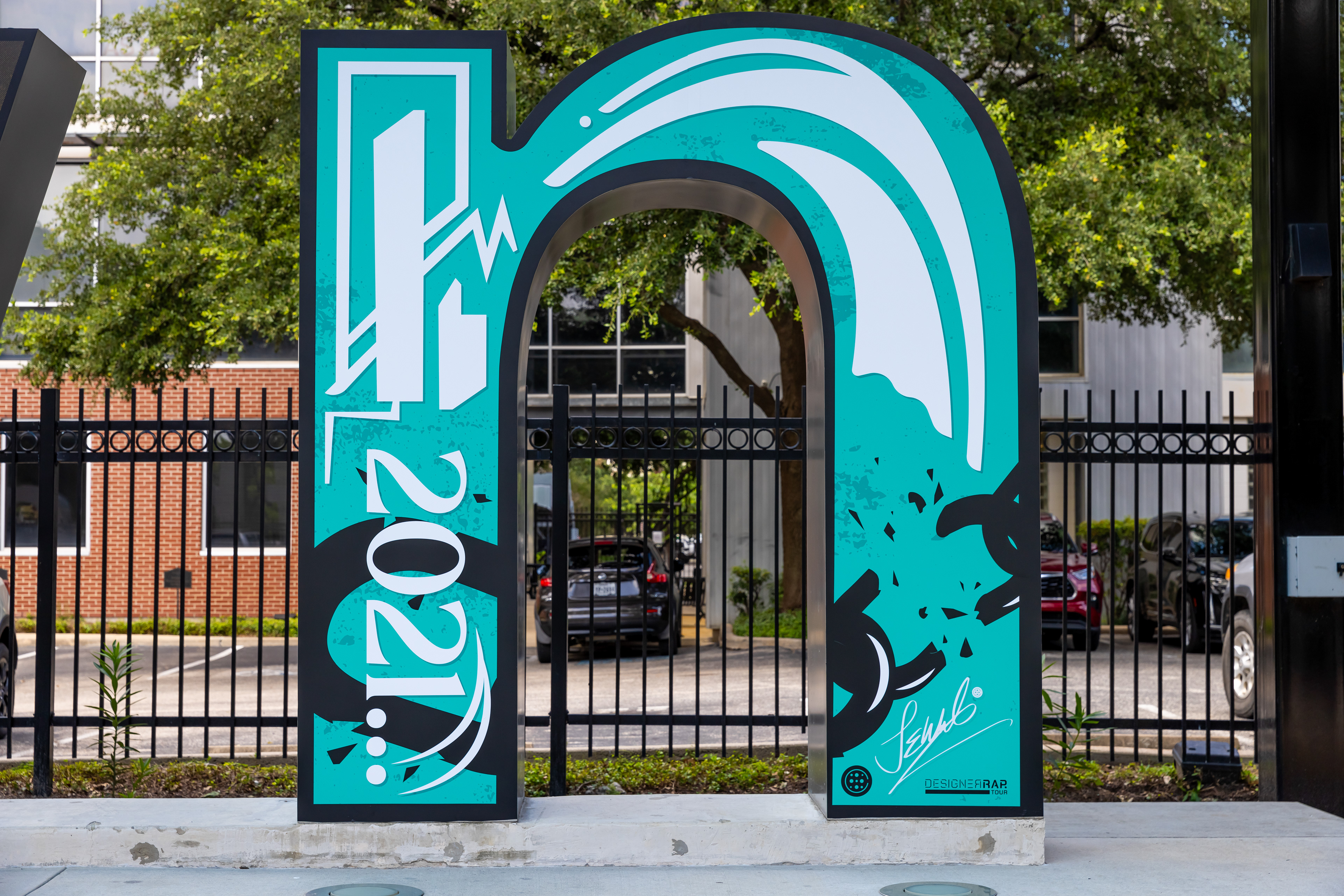 Midtown Houston, historically part of the Third Ward and Fourth Ward communities, continuously honors the legacies of these historically Black neighborhoods by sharing Houston’s powerful Black history. The artist said, “My goal for this commission was to search high and low within myself, and throughout the research and development process, to unpack a story that had not been told in the traditional Juneteenth fashion.”