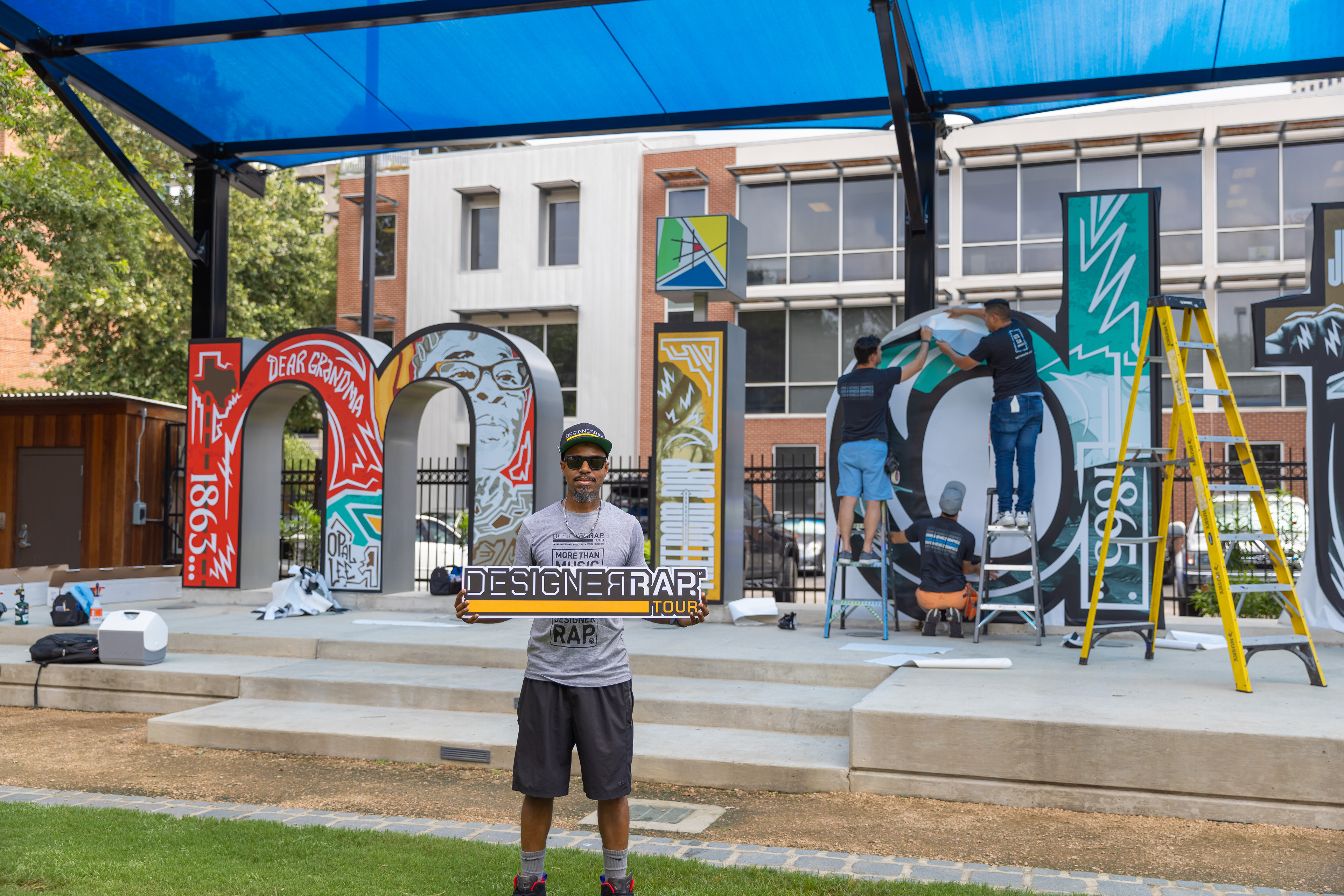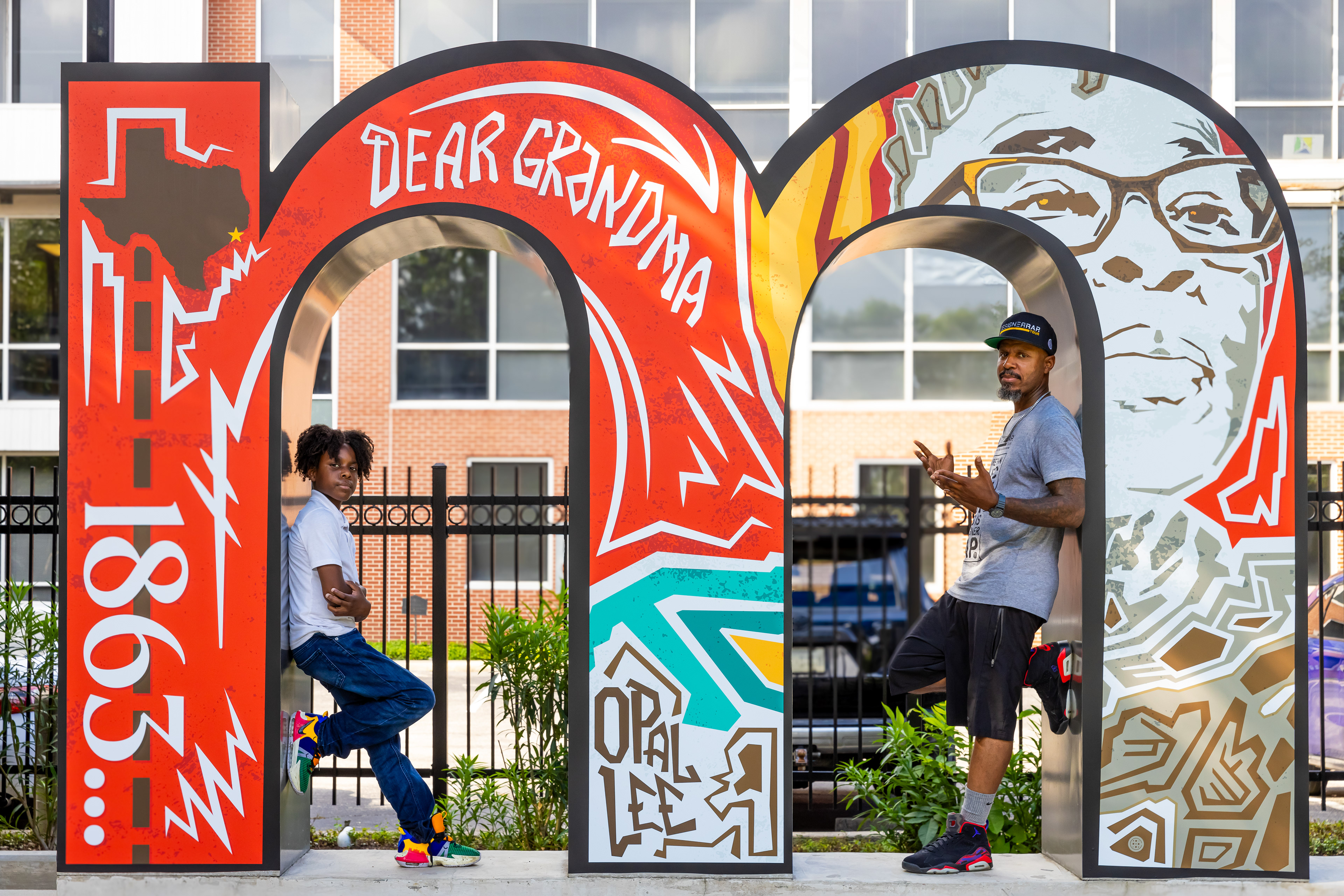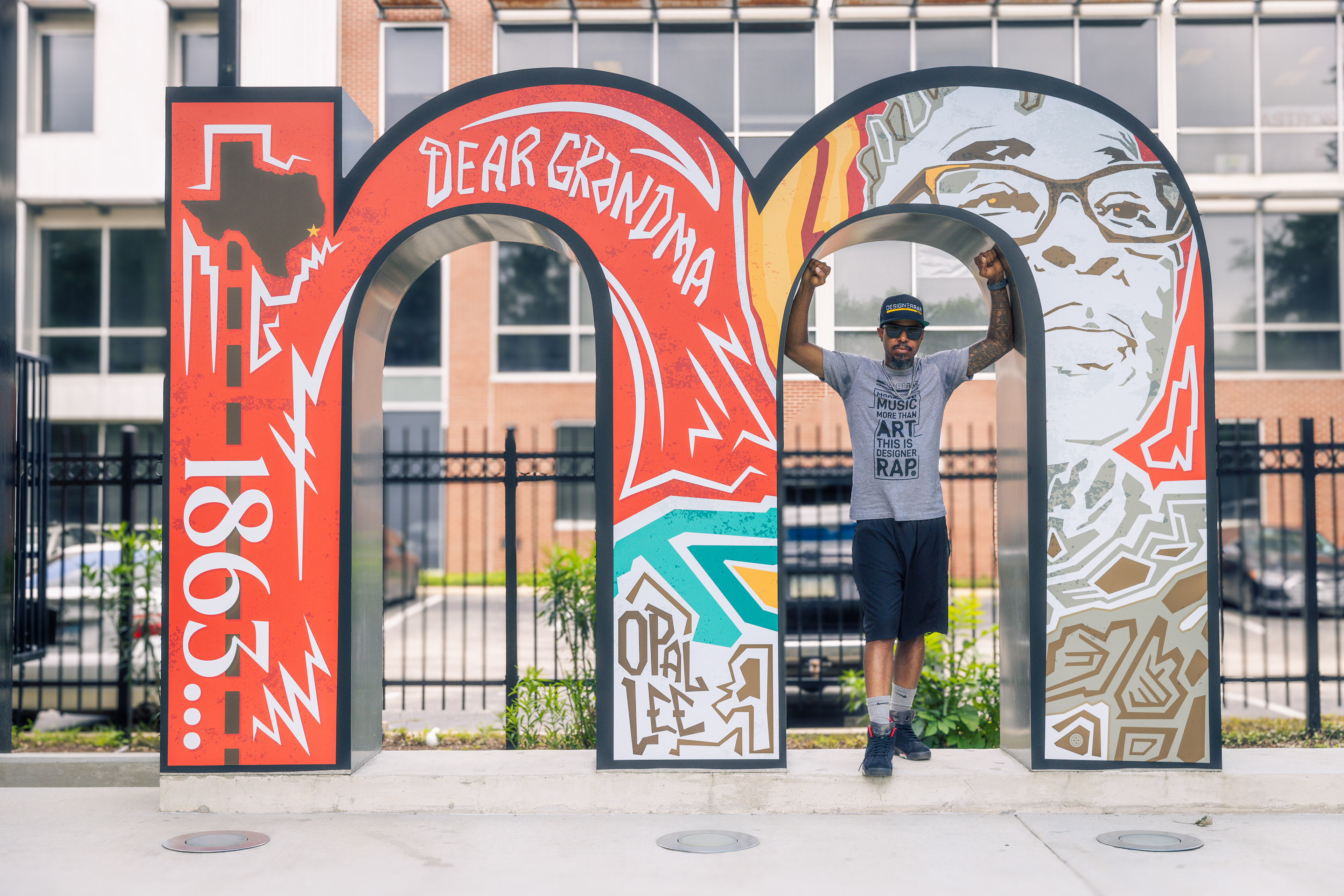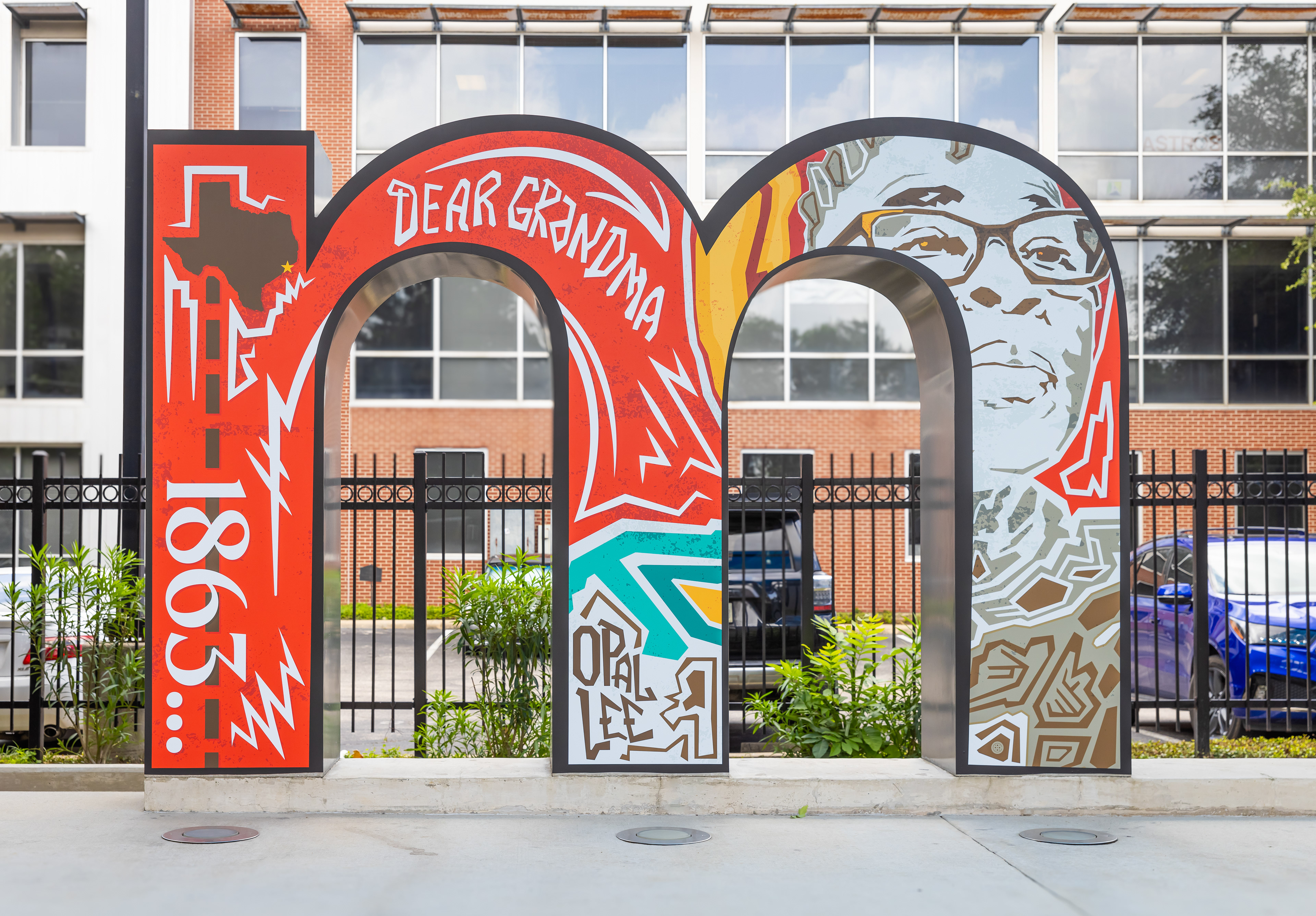 In celebration of the 2024 Juneteenth holiday, local artist, James E! Walker’s artwork is now featured on the famous Midtown Houston sign at Bagby Park located at 415 Gray St, Houston, TX 77002. The installation, titled “Dear Grandma,” a tribute to Ms. Opal Lee, the “Grandmother of Juneteenth,” who spearheaded the freedom walk leading to Juneteenth becoming a national holiday in 2021.